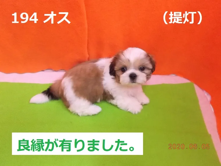 194 オス 提灯(ちょうちん) 2020/07/15 番号 194 性別 オス 仮名 提灯(ちょうちん) 価格 良縁が有りました。 提灯 生年月日 2020年4月8日 19:50頃 血統書 無し 母「ほおずき」、父???