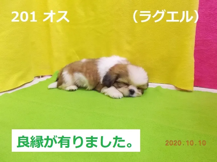 201 オス ラグエル 2020/08/21 番号 201 性別 オス 仮名 ラグエル 価格 良縁が有りました。 ラグエル 生年月日 2020年8月18日 20:00頃 血統書 有り(JKC) 母「キャベツ」、父「ヒッタ」 お引き渡しは10月20日以降になります。
