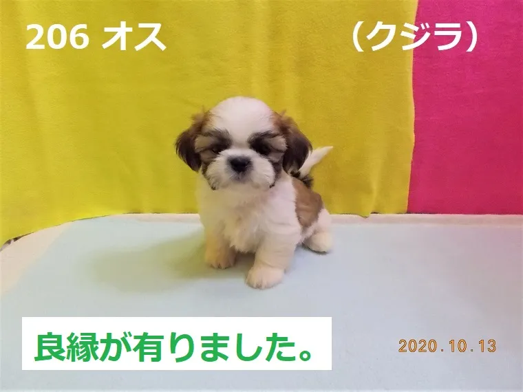 206 オス クジラ 2020/08/26 番号 206 性別 オス 仮名 クジラ 価格 良縁が有りました。 クジラ 生年月日 2020年8月23日 16:10頃 血統書 有り(JKC) 母「キララ」、父「リンゴ」 お引き渡しは10月24日以降になります。