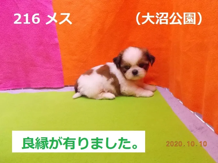 216 メス 大沼公園(おおぬまこうえん) 2020/09/03 番号 216 性別 メス 仮名 大沼公園(おおぬまこうえん) 価格 良縁が有りました。 大沼公園 生年月日 2020年8月31日 20:20頃 血統書 有り(JKC) 母「ソラ」、父「リンゴ」 お引き渡しは10月31日以降になります。