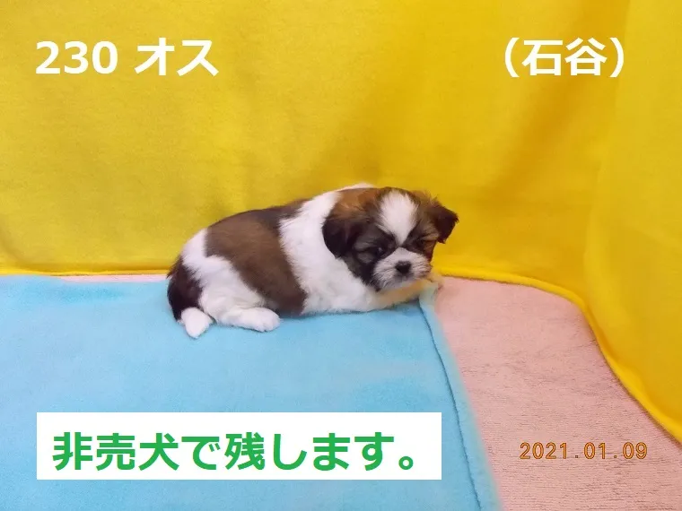 230 オス 石谷(いしや) 2020/12/03 番号 230 性別 オス 仮名 石谷(いしや) 価格 非売犬で残します。 石谷 生年月日 2020年11月29日 20:23頃 血統書 有り(JKC) 母「明鏡止水」、父「リンゴ」非売犬ですが、参考情報として掲載致します。