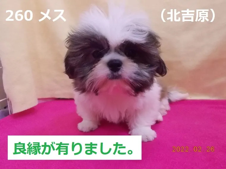 260 メス 北吉原(きたよしはら) 2021/12/31 番号 260 性別 メス 仮名 北吉原(きたよしはら) 価格 良縁が有りました。 北吉原 生年月日 2021年11月11日 7:40頃 血統書 有り(JKC) 母「レタス」、父「充電」 お引き渡しは1月12日(水)以降になります。