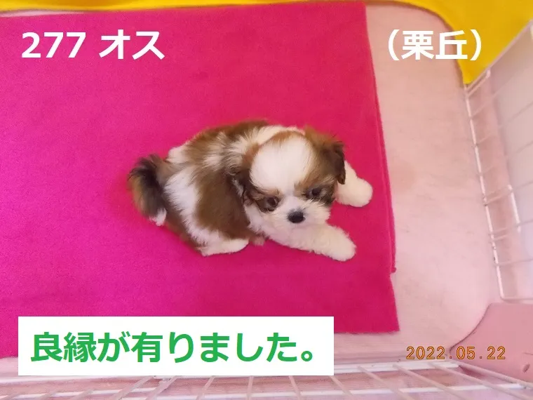 277 オス 栗丘(くりおか) 2022/05/22 番号 277 性別 オス 仮名 栗丘(くりおか) 価格 良縁が有りました。 栗丘 生年月日 2022年4月2日 20:48頃 血統書 有り(JKC) 母「サチ」、父「大麦」 お引き渡しは6月2日(木)以降になります。