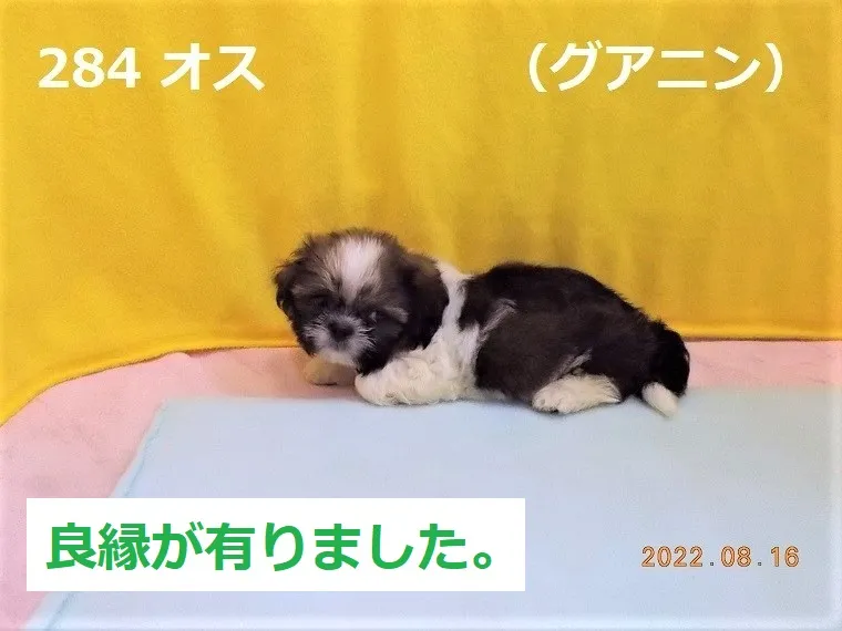284 オス グアニン (guanine) 2022/08/16 番号 284 性別 オス 仮名 グアニン (guanine) 価格 良縁が有りました。 グアニン 生年月日 2022年6月27日 14:46頃 血統書 有り(JKC) 母「トマト」、父「充電」 お引き渡しは8月27日(土)以降になります。