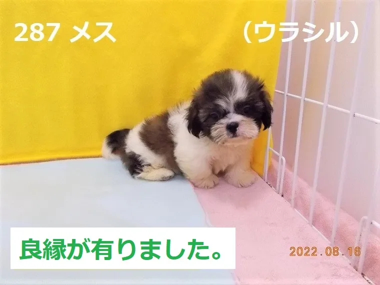 287 メス ウラシル (uracil) 2022/08/16 番号 287 性別 メス 仮名 ウラシル (uracil) 価格 良縁が有りました。 ウラシル 生年月日 2022年6月27日 18:20頃 血統書 有り(JKC) 母「トマト」、父「充電」 お引き渡しは8月27日(土)以降になります。