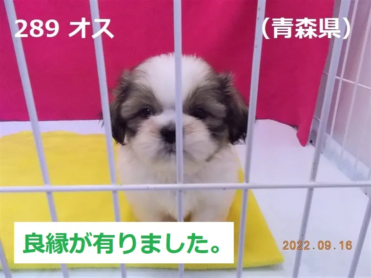 289 オス 青森県(あおもりけん) 2022/09/16 番号 289 性別 オス 仮名 青森県(あおもりけん) 価格 良縁が有りました。 青森県 生年月日 2022年7月28日 3:30頃 血統書 有り(JKC) 母「渡島沼尻」、父「大麦」 お引き渡しは9月27日(火)以降になります。