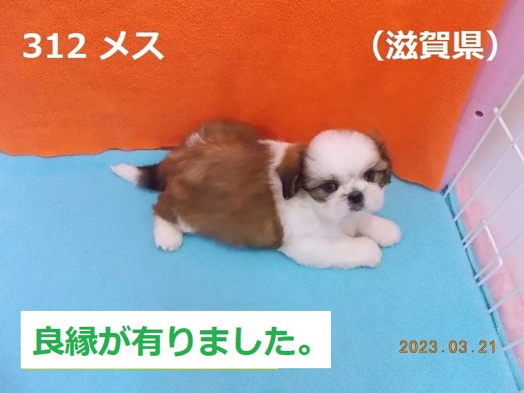 312 メス 滋賀県(しがけん) 2023/03/21 番号 312 性別 メス 仮名 滋賀県(しがけん) 価格 良縁が有りました。 滋賀県 生年月日 2023年1月30日 血統書 有り(JKC) 母「トマト」、父「豊浦」 お引き渡しは4月1日(土)以降になります。