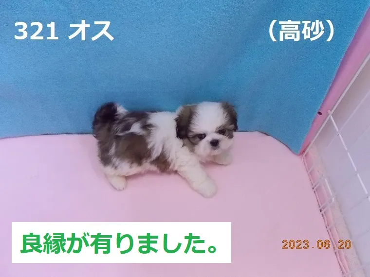 321 オス 高砂(たかさご) 2023/06/20 番号 321 性別 オス 仮名 高砂(たかさご) 価格 良縁が有りました。 高砂 生年月日 2023年5月1日 2:20頃 血統書 有り(JKC) 母「渡島砂原」、父「大麦」 お引き渡しは7月1日(土)以降になります。