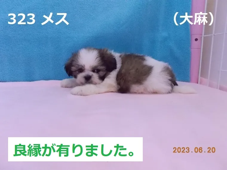 323 メス 大麻(おおあさ) 2023/06/20 番号 323 性別 メス 仮名 大麻(おおあさ) 価格 良縁が有りました。 大麻 生年月日 2023年5月1日 1:49頃 血統書 有り(JKC) 母「渡島砂原」、父「大麦」 お引き渡しは7月1日(土)以降になります。