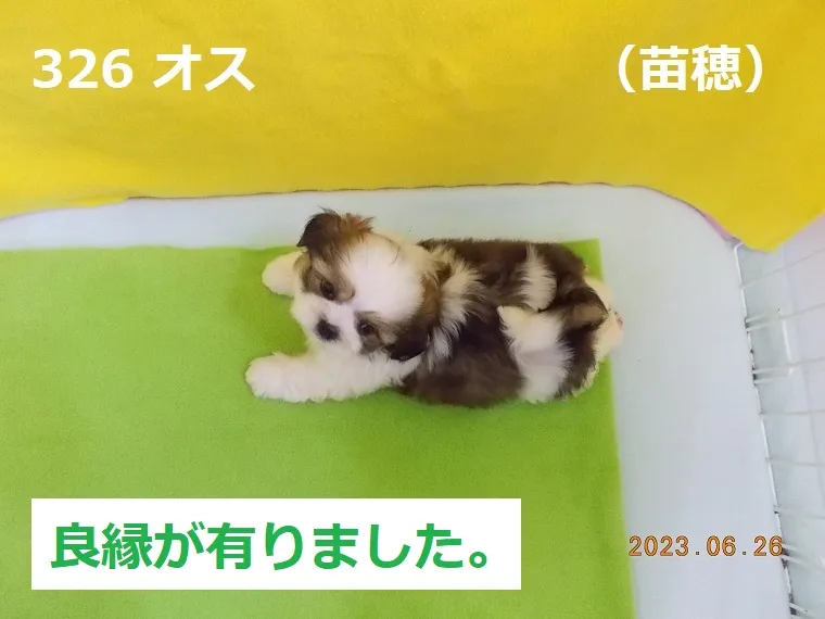326 オス 苗穂(なえぼ) 2023/06/26 番号 326 性別 オス 仮名 苗穂(なえぼ) 価格 良縁が有りました。 苗穂 生年月日 2023年5月7日 11:08頃 血統書 有り(JKC) 母「伊達紋別」、父「大麦」 お引き渡しは7月8日(土)以降になります。