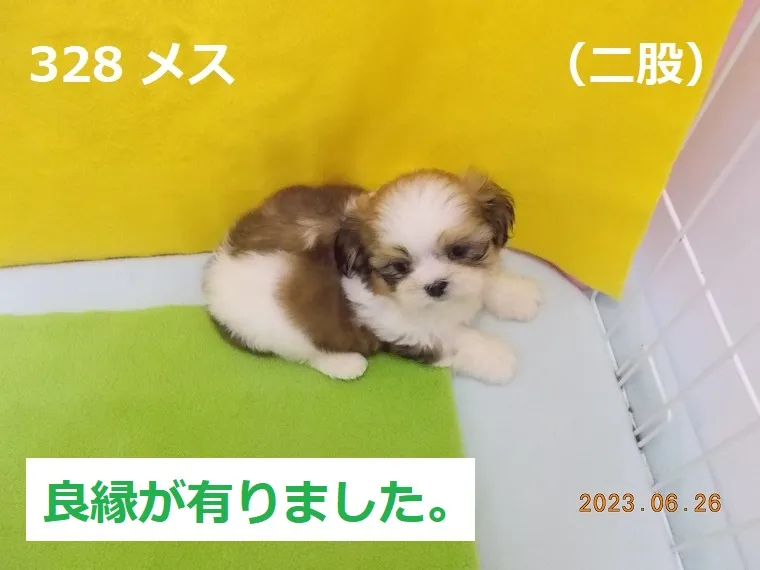 328 メス 二股(ふたまた) 2023/06/26 番号 328 性別 メス 仮名 二股(ふたまた) 価格 良縁が有りました。 二股 生年月日 2023年5月7日 9:13頃 血統書 有り(JKC) 母「伊達紋別」、父「大麦」 お引き渡しは7月8日(土)以降になります。