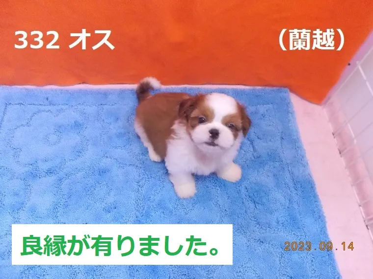 332 オス 蘭越(らんこし) 2023/09/14 番号 332 性別 オス 仮名 蘭越(らんこし) 価格 良縁が有りました。 蘭越 生年月日 2023年7月26日 19:33頃 血統書 有り(JKC) 母「洞爺」、父「大麦」 お引き渡しは9月26日(火)以降になります。