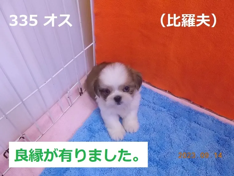 335 オス 比羅夫(ひらふ) 2023/09/14 番号 335 性別 オス 仮名 比羅夫(ひらふ) 価格 良縁が有りました。 比羅夫 生年月日 2023年7月26日 21:09頃 血統書 有り(JKC) 母「洞爺」、父「大麦」 お引き渡しは9月26日(火)以降になります。