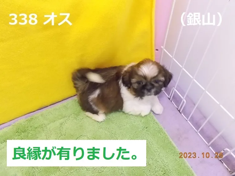 338 オス 銀山(ぎんざん) 2023/10/26 番号 338 性別 オス 仮名 銀山(ぎんざん) 価格 良縁が有りました。 銀山 生年月日 2023年9月6日 18:05頃 血統書 有り(JKC) 母「渡島沼尻」、父「大麦」 お引き渡しは11月7日(火)以降になります。