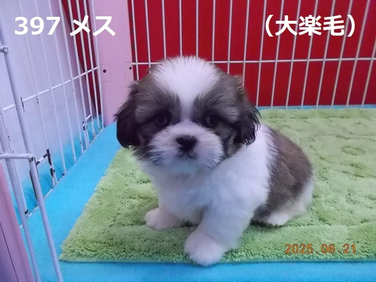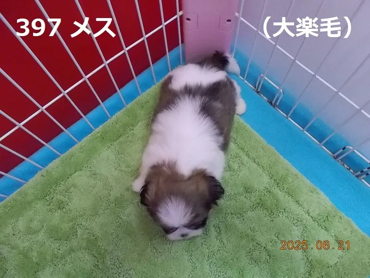 397 メス 大楽毛(おたのしけ) 2025/09/29 番号:397 性別:メス 仮名:大楽毛(おたのしけ) 生年月日:2025年5月2日 13:03頃 血統書:有り(JKC) 母「福井県」、父「埼玉県」 お引き渡しは7月2日(水)以降になります。 価格:非売犬になりました。