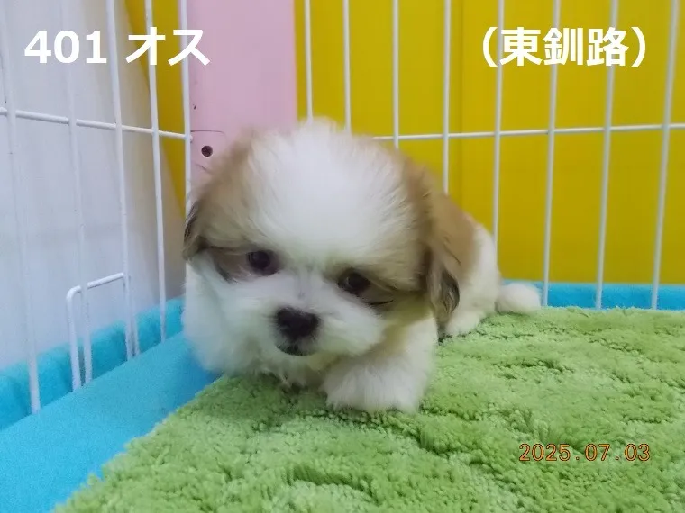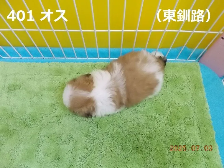 401 オス 東釧路(ひがしくしろ) 2025/09/29 番号:401 性別:オス 仮名:東釧路(ひがしくしろ) 生年月日:2025年5月14日 24:20頃 血統書:有り(JKC) 母「黒松内」、父「虎杖浜」 お引き渡しは7月15日(火)以降になります。 価格:良縁が有りました。